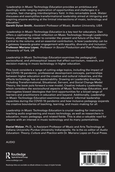'Leadership in Music Technology Education provides an ambitious and dazzlingly wide-ranging exploration of opportunities and challenges in a complex, fast-changing interdisciplinary field. In this remarkable book, Walzer discusses and exemplifies transformational leadership aimed at intriguing and inspiring anyone working at the liminal intersections of music, technology and education.'