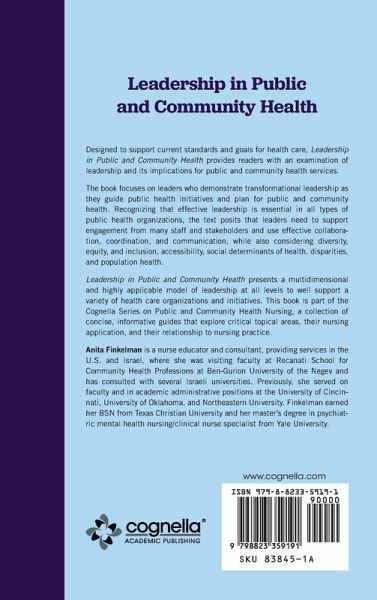 Designed to support current standards and goals for health care, Leadership in Public and Community Health provides readers with an examination of leadership and its implications for public and community health services. The book focuses on leaders who demonstrate transformational leadership as they guide public health initiatives and plan for public and community health. Recognizing that effective leadership is essential in all types of public health organizations, the text posits that leaders need to support engagement from many staff and stakeholders and use effective collaboration, coordination, and communication, while also considering diversity, equity, and inclusion, accessibility, social determinants of health, disparities, and population health. Leadership in Public and Community Health presents a multidimensional and highly applicable model of leadership at all levels to well support a variety of health care organizations and initiatives. This book is part of the Cognella Series on Public and Community Health Nursing, a collection of concise, informative guides that explore critical topical areas, their nursing application, and their relationship to nursing practice.