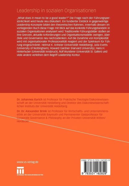 "What does it mean to be a good leader?" Die Frage nach der Führungspersönlichkeit wird heute neu diskutiert. Ein fundierter Einblick in gegenwärtige Leadership-Konzepte bildet den theoretischen Rahmen, innerhalb dessen hier diese Frage mit Blick auf das konkrete Führungshandeln in sozialen Organisationen analysiert werden: Traditionelle Führungsbilder stoßen an ihre Grenzen, aktuelle Anforderungen und Organisationsmodelle zwingen, über Ziele und Governance neu nachzudenken. Auf die Zunahme von Komplexität wird mit organisationaler Professionalität reagiert und der Spielraum für Führung eingeschränkt. Helmut K. Anheier (Universität Heidelberg), Julia Evetts (University of Nottingham), Howard Gardner (Harvard University), Hans H. Hinterhuber (Universität Innsbruck), Rolf Wunderer (Universität St. Gallen) und viele andere verleihen dem Begriff Leadership Kontur.