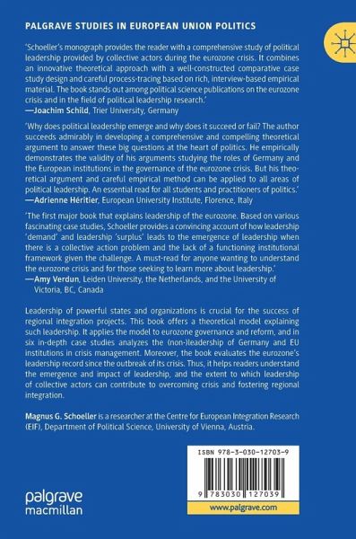 Leadership of powerful states and organizations is crucial for the success of regional integration projects. This book offers a theoretical model explaining such leadership. By applying the model to eurozone governance and reform, the book combines innovative theorizing on leadership in regional and international affairs with original research on Economic and Monetary Union politics. Six in-depth case studies analyze the (non-)leadership of Germany and EU institutions in eurozone crisis management. Moreover, the book evaluates the eurozone's leadership record since the outbreak of its crisis and helps readers understand the leadership of collective actors, and the extent to which they can contribute to overcoming crisis and fostering European integration. In particular, the book investigates the under-researched questions of who provided leadership in the eurozone crisis and why, and which conditions are required to achieve successful leadership in the EU.