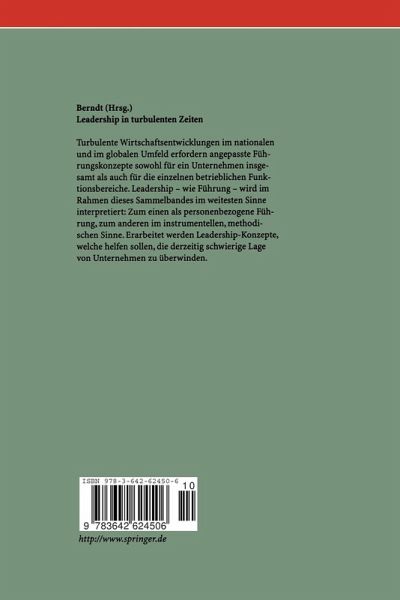 Turbulente Wirtschaftsentwicklungen im nationalen und im globalen Umfeld erfordern angepasste Führungskonzepte sowohl für ein Unternehmen insgesamt als auch für die einzelnen betrieblichen Funktionsbereiche. Leadership - wie Führung - wird hier im weitesten Sinne interpretiert: Zum einen als personenbezogene Führung, zum anderen im instrumentellen, methodischen Sinne. Erarbeitet werden Leadership-Konzepte, welche helfen sollen, die derzeitig schwierige Lage von Unternehmen zu überwinden.