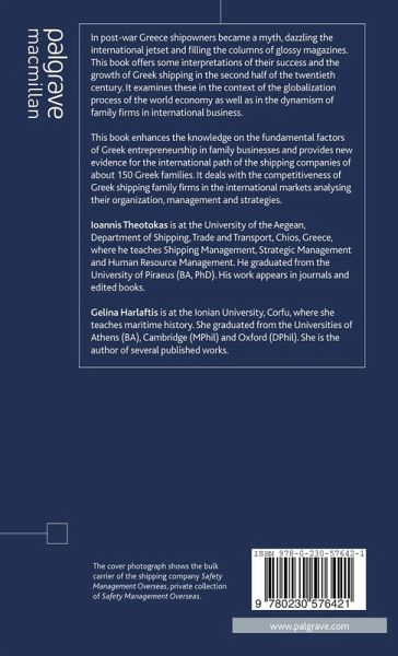 List of Figures List of Tables Acknowledgements Preface Introduction PART I: SHIPOWNERS, COMPANIES AND SHIPPING International Freight Markets and Greek-owned Shipping, 1945-2000 The Division of Freight Markets World Sea-borne Trade The International Fleet and Freight Markets The Greek-owned Shipping Companies Greek-owned Shipping Companies The Size of Shipping Companies The Fragmentation of the Shipping Companies The Economic Background of 'Non Traditional Shipowners' The Business Philosophy of Greek Shipowners Family Companies Strategies of Greek Shipping Companies Cost Leadership and Competitiveness Choice of Flags and Maritime Labour Innovation and Competitiveness Investment Strategy Greek and British Shipping Companies Network and Family Organizational and Managerial Patterns Entrepreneurial Methods Shipping Companies, the Economy and the State Shipping Capital and Greek Economy The Piraeus Maritime Centre Greek State and Shipping PART II: FAMILY SHIPPING BUSINESSES