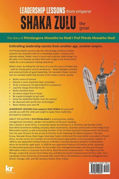 The diary of Phindangene Mzwakhe ka Madi I Phinda Mzwakhe Madi Enthralling leadership secrets from another age, another empire... Prof Phinda Madi's journey into the rich heritage of Africa's history unearths the dramatic truth of remarkable leader's victories and ultimate defeat. Shaka's story is heroic and inspiring. Madi brings it to life with a rich flowing narrative filled with imagery and drama which makes for a very pleasant reading experience. What's more, by telling the full story of a real-life career of leadership-with its strong points and its weaknesses-Madi highlights essential and universal truths of good leadership. He translates Shaka's secrets into ten valuable leadership lessons in this modern world, namely: 1. Build a sense of mission 2. Mission is more important than convention 3. To be a conqueror, be apprenticed to a conqueror 4. Lead the charge (from the front) 5. Build a fanatical team 6. Go where angels fear to tread 7. Be a good strategist (or get one) 8. Know the battlefield (better than the enemy) 9. Be obsessed with world-class technologies 10. Never believe your own PR Leadership lessons from emperor ZULU SHAKA the great will provide you with the skills and insight toapply these leadership principles to maximise.