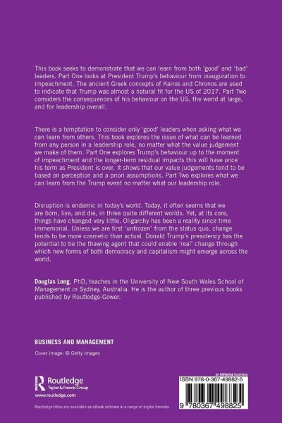 This book seeks to demonstrate that we can learn from both 'good' and 'bad' leaders. Part One looks at President Trump's behaviour from inauguration to impeachment. The ancient Greek concepts of Kairos and Chronos are used to indicate that Trump was almost a natural fit for the US of 2017. Part Two considers the consequences of his behaviour on the US, the world at large, and for leadership overall. There is a temptation to consider only 'good' leaders when asking what we can learn from others. This book explores the issue of what can be learned from any person in a leadership role, no matter what the value judgement we make of them. Part One explores Trump's behaviour up to the moment of impeachment and the longer-term residual impacts this will have once his term as President is over. It shows that our value judgements tend to be based on perception and a priori assumptions. Part Two explores what we can learn from the Trump event no matter what our leadership role. Disruption is endemic in today's world. Today, it often seems that we are born, live, and die, in three quite different worlds. Yet, at its core, things have changed very little. Oligarchy has been a reality since time immemorial. Unless we are first 'unfrozen' from the status quo, change tends to be more cosmetic than actual. Donald Trump's presidency has the potential to be the thawing agent that could enable 'real' change through which new forms of both democracy and capitalism might emerge across the world.
