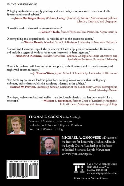 Some leaders fundamentally alter the status quo whilst others guide quietly. Most leadership books emphasise specific rules, but Tom Cronin and Michael Genovese see leadership as filled with paradox. Leadership Matters offers a different view of leadership - one that builds community and responds creatively to new situations. Cronin and Genovese argue that leadership is about more than just charisma and set leaders on to a different path - to unleash the power of paradox.