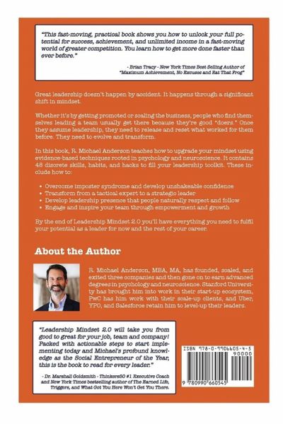 Great leadership doesn't happen by accident. It happens through a significant shift in mindset. Whether it's by getting promoted or scaling the business, people who find themselves leading a team usually get there because they're good "doers." Once they assume leadership, they need to release and reset what worked for them before. They need to evolve and transform. In this book, R. Michael Anderson teaches how to upgrade your mindset using evidence-based techniques rooted in psychology and neuroscience. It contains 48 discrete skills, habits, and hacks for you to fill your leadership toolkit. These include how to: · Overcome imposter syndrome and develop unshakeable confidence · Transform from a tactical expert to a strategic leader · Develop leadership presence that people naturally respect and follow · Engage and inspire your team through empowerment and growth Learn the same strategies that organizations like Salesforce, Microsoft and Standford University bring Michael in to teach their leadership teams. By the end of Leadership Mindset 2.0 you'll have everything you need to fulfill your potential as a leader for now and the rest of your career.