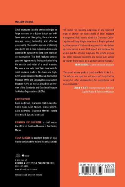 Editors' Note Preface Bob Beatty Chapter 1 Assessment Tools for Advancing Your Museum Cherie Cook, Elizabeth Merritt, Sara Gonzales Chapter 2 Making a Case for Small Museums Steve Friesen Chapter 3 Mission and Vision Again?? What's the Big Deal? Harold Skramstad and Susan Skramstad Chapter 4 DIY Strategic Planning Cinnamon Catlin-Legutko Chapter 5 Thousands of Small Good Actions: Successful Museum Governance Teresa Goforth Chapter 6 Marry Me! The Relationship between the Director and the Board Katie Anderson Bibliography Index About the Contributors