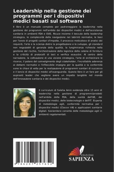 Il libro è un manuale completo per padroneggiare la leadership nella gestione dei programmi nell'ambito dei dispositivi medici e dell'assistenza sanitaria in ambienti FDA e OUS. Ricuce insieme il tessuto della leadership strategica, le complessità della navigazione nei labirinti normativi, le basi per l'avvio di progetti sanitari d'impatto, il processo meticoloso di analisi dei requisiti, l'arte e la scienza dietro la progettazione e lo sviluppo, gli standard non negoziabili di garanzia della qualità, la lungimiranza richiesta nella gestione del rischio, l'orchestrazione della logistica della catena di fornitura e la criticità di protocolli di test e verifica esaustivi. Al centro della narrazione, la coltivazione di una visione strategica, l'arte di orchestrare le risorse, il potere del coinvolgimento degli stakeholder, l'incrollabile aderenza ai dettami normativi e l'inflessibile impegno per la qualità e la conformità sono le chiavi di volta per la realizzazione di programmi sanitari di successo e il lancio di dispositivi medici all'avanguardia. Questo libro è un faro per gli aspiranti leader che vogliono avere un impatto tangibile nel mondo dell'innovazione sanitaria e dei dispositivi medici.