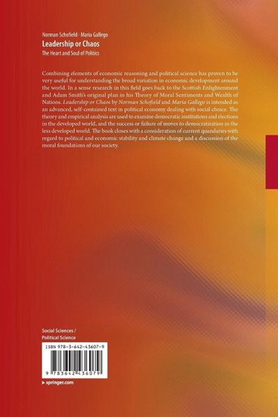 Combining elements of economic reasoning and political science has proven to be very useful for understanding the broad variation in economic development around the world. In a sense research in this field goes back to the Scottish Enlightenment and Adam Smith s original plan in his Theory of Moral Sentiments and Wealth of Nations. Leadership or Chaos by Norman Schofield and Maria Gallego is intended as an advanced, self-contained text in political economy dealing with social choice. The theory and empirical analysis are used to examine democratic institutions and elections in the developed world, and the success or failure of moves to democratization in the less developed world. The book closes with a consideration of current quandaries with regard to political and economic stability and climate change and a discussion of the moral foundations of our society.