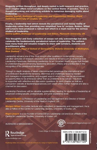 'Elegantly written throughout, and deeply rooted in both research and practice, each chapter offers novel variations on the central theme of paradox. This is a thought provoking and refreshing antidote to numerous damaging myths about leadership.' - Dennis Tourish, professor of Leadership and Organization Studies, Royal Holloway University of London, UK