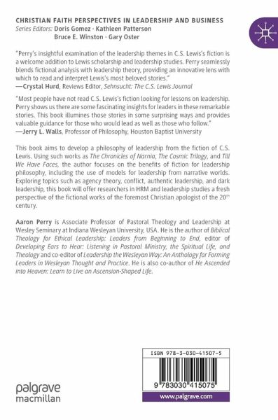 "An unusually rich resource for understanding the challenges of leadership. ... The primary contribution of Perry's book to leadership studies is founded on his insight that the fiction of C.S. Lewis has a lot to say about leadership. ... Perry offers a fresh and illuminating contribution to the study of leadership. ... Perry's book does a great deed in bringing the fiction of C.S. Lewis into leadership studies and provides a promising start towards understanding the importance of Lewis's contribution." (Joseph J. McInerney, Journal of Inklings Studies, Vol. 11 (1), April, 2021)