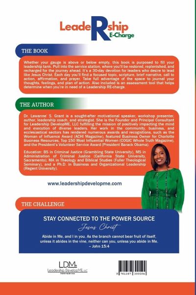 Whether your gauge is above or below empty, this book is purposed to fill your leadership tank. Pull into the service station, where you'll be restored, replenished, and recharged for the journey ahead. It's a 30-day devotion for leaders who desire to lead like Jesus Christ. Each day you'll find a focused topic, scripture, brief narrative, call to action, affirmation, and prayer. Take full advantage of the space to journal your thoughts, feelings, and plan of action. Also included is an assessment tool that helps determine when you're in need of a Leadership RE-charge.