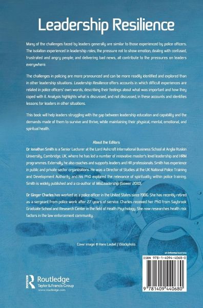 Dr Jonathan Smith is a Senior Lecturer at the Lord Ashcroft International Business School at Anglia Ruskin University, Cambridge, UK, where he has led a number of innovative master's level leadership and HRM programmes. Externally, he also coaches and supports leaders and HR professionals. Smith has experience in public and private sector organisations. He was a Director of Studies at the UK National Police Training and Development Authority and his PhD explored the relevance of spirituality within police training. Smith is widely published and a co-author of MisLeadership (Gower 2010). Dr Ginger Charles has worked as a police officer in the United States since 1986. She has recently retired as a sergeant from police work after 27 years of service. Charles received her PhD from Saybrook Graduate School and Research Center in the field of Health Psychology. She now researches health risk factors in the law enforcement community.