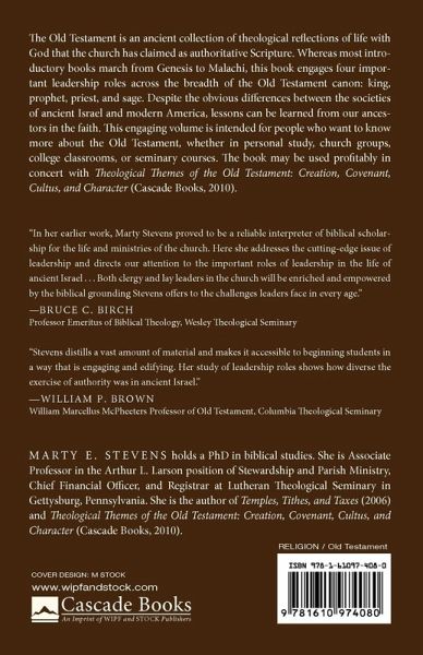 The Old Testament is an ancient collection of theological reflections of life with God that the church has claimed as authoritative Scripture. Whereas most introductory books march from Genesis to Malachi, this book engages four important leadership roles across the breadth of the Old Testament canon: king, prophet, priest, and sage. Despite the obvious differences between the societies of ancient Israel and modern America, lessons can be learned from our ancestors in the faith. This engaging volume is intended for people who want to know more about the Old Testament, whether in personal study, church groups, college classrooms, or seminary courses. The book may be used profitably in concert with Theological Themes of the Old Testament: Creation, Covenant, Cultus, and Character (Cascade Books, 2010).