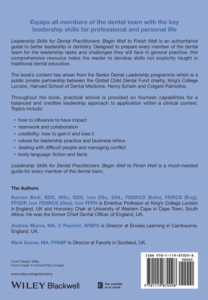 Leadership Skills for Dental Practitioners: Begin Well to Finish Well is an authoritative guide to better leadership in dentistry. Designed to prepare every member of the dental team for the leadership tasks and challenges they will face in general practice, this comprehensive resource helps the reader to develop skills not explicitly taught in traditional dental education.