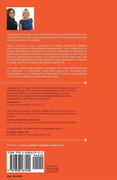 In Leadership Through COVID-19 and Beyond the authors present a simple yet insightful framework, the Discovery Prism© to support all of us in the turbulent times we are in. This is a guide to reconnecting the positive human energy in organisations toward shared purpose and extraordinary possibility. The Covid-19 pandemic has caused disruption on an unprecedented scale and calls for people in organisations to operate at a new level of consciousness in order to survive and re-emerge stronger. A different kind of leadership is urgently required that invites everyone to play a part in creating the kind of organisations where people and the planet thrive. The Discovery Prism© framework serves as a guide to organisational alignment and renewal, by mapping out what is and is not connected. These broken connections cause confusion, disengagement and waste the precious human resource at the heart of any organisation. The exploration of the Discovery Prism© helps create shared meaning, a clear direction and engaged stakeholders. The Discovery Prism© describes a set of six lenses, which, when aligned, create an energy greater than the sum of the parts. Some lenses are familiar and already at the core of all business practice and others are often given little consideration but are key to creating an integrated organisation: resilient, sustainable and better placed to navigate the uncertainties of the 21st century environment. The three core lenses ask the questions: Why, How, What, Who and Where and When. They are: 1 Bigger Purpose & Core Values: Why are we here, and how are we together 2. Mission & Stakeholders: What do we do and who do we serve 3. Vision: Where are we going and when will we get there Their intersections form three further overlap lenses: 4. Legacy: what we consciously create for future generations 5. Promises: that we make internally and externally (i.e. culture and brand) 6. Strategy: how we deliver the vision At the centre where everything overlaps is the Prism itself. This is a metaphor for the concentrated, directed energy (the single white light) coming from the diverse colours of the various lenses as well as from wide collaboration across the organisation and externally from all stakeholders. The book describes the rationale behind the framework: the challenges for organisations currently dealing with the impact of the global pandemic and how working with the Discovery Prism© framework helps reimagine a sustainable future. It describes who the book is for and introduces the concepts of being versus doing, organisational presence, human and systemic sustainability.