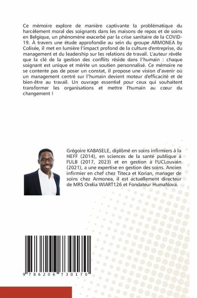 Ce mémoire explore de manière captivante la problématique du harcèlement moral des soignants dans les maisons de repos et de soins en Belgique, un phénomène exacerbé par la crise sanitaire de la COVID-19. À travers une étude approfondie au sein du groupe ARMONEA by Colisée, il met en lumière l'impact profond de la culture d'entreprise, du management et du leadership sur les relations de travail. L'auteur révèle que la clé de la gestion des conflits réside dans l'humain : chaque soignant est unique et mérite un soutien personnalisé. Ce mémoire ne se contente pas de poser un constat, il propose une vision d'avenir où un management centré sur l'humain devient moteur d'efficacité et de bien-être au travail. Un ouvrage essentiel pour ceux qui souhaitent transformer les organisations et mettre l'humain au coeur du changement !