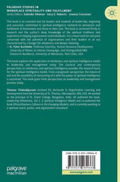 This book explores the application of wholeness and spiritual intelligence model in leadership and management today. The classical and contemporary perspectives on wholeness and spiritual intelligence provides the research basis for the spiritual intelligence model. From a pragmatic perspective, the integration of the nature of evil and its impact on spiritual intelligence is examined. This book gives fresh perspectives on leadership and management practice today