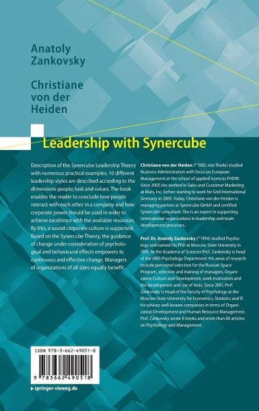 Christiane von der Heiden (* 1982; née Thiele) studied Business Administration with focus on European Management at the school of applied sciences FHDW. Since 2005 she worked in Sales and Customer Marketing at Mars, Inc. before starting to work for Grid International Germany in 2009. Today, Christiane von der Heiden is managing partner at Synercube GmbH and certified Synercube consultant. She is an expert in supporting international organizations in leadership and team development processes. Prof. Dr. Anatoly Zankovsky (* 1954) studied Psychology and earned his PhD at Moscow State University in 1985. At the Academy of Sciences Prof. Zankovsky is head of the ABO-Psychology Department. His areas of research include personnel selection for the Russian Space Program, selection and training of managers, Organization Culture and Development, work motivation and the development and use of tests. Since 2001, Prof. Zankovsky is Head of the Faculty of Psychology at the Moscow State University for Economics, Statistics and IT. He advises well-known companies in terms of Organization Development and Human Resource Management. Prof. Zankovsky wrote 8 books and more than 80 articles on Psychology and Management.