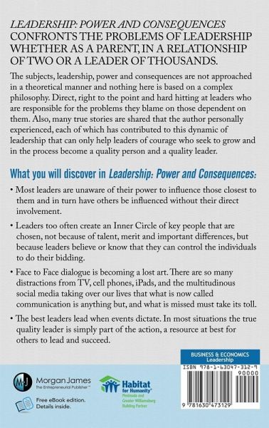 If you are a leader or aspire to leadership over others you must read "Leaders, Power & Consequences." It clearly exposes the influences a leader has with people who are close and important to the leader. The leader is the person who holds the true power, that is, "the buck stops with them." It is not underlings who act on behalf of another who dictates their actions. They are not the true power, and no one is long deceived. Where do problems in relationships, trivial or significant, not exist? The answer to resolving the problem is likely found where the power is located. Who are the true…mehr