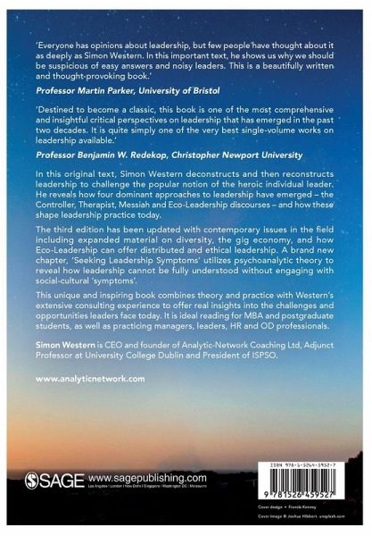 New to the third edition: A new chapter on leadership symptoms that offers a novel approach to researching and conceptualizing leadership. An expanded chapter on Leadership and Diversity with Pooja Sachdev. Updated material on The Eco-Leadership Discourse , with the chapter now differentiating between ethical eco-leadership and commercial eco-leaders (e.g Facebook, Google, Amazon). Analysis of contemporary leadership trends, including leadership in the gig economy, algorithmic management, and the rise in messiah and authoritarian leadership in populist parties. Updated case studies with references to current politicians and organizations.