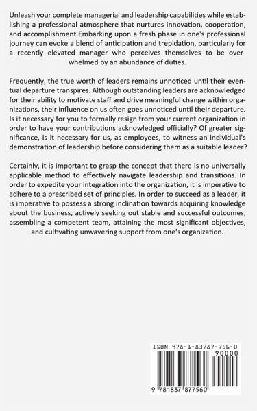 Unleash your complete managerial and leadership capabilities while establishing a professional atmosphere that nurtures innovation, cooperation, and accomplishment.Embarking upon a fresh phase in one's professional journey can evoke a blend of anticipation and trepidation, particularly for a recently elevated manager who perceives themselves to be overwhelmed by an abundance of duties. Frequently, the true worth of leaders remains unnoticed until their eventual departure transpires. Although outstanding leaders are acknowledged for their ability to motivate staff and drive meaningful change within organizations, their influence on us often goes unnoticed until their departure. Is it necessary for you to formally resign from your current organization in order to have your contributions acknowledged officially? Of greater significance, is it necessary for us, as employees, to witness an individual's demonstration of leadership before considering them as a suitable leader? Certainly, it is important to grasp the concept that there is no universally applicable method to effectively navigate leadership and transitions. In order to expedite your integration into the organization, it is imperative to adhere to a prescribed set of principles. In order to succeed as a leader, it is imperative to possess a strong inclination towards acquiring knowledge about the business, actively seeking out stable and successful outcomes, assembling a competent team, attaining the most significant objectives, and cultivating unwavering support from one's organization.