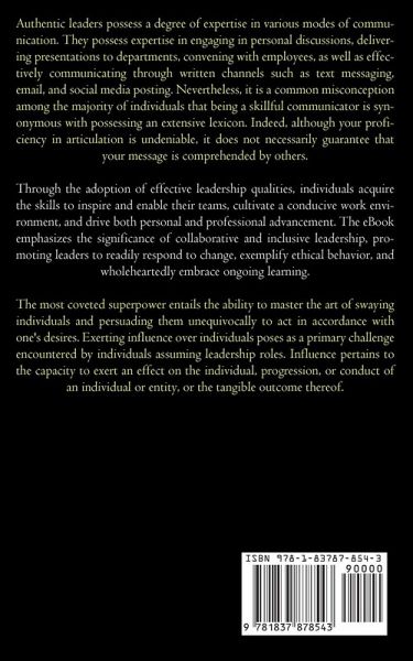 Authentic leaders possess a degree of expertise in various modes of communication. They possess expertise in engaging in personal discussions, delivering presentations to departments, convening with employees, as well as effectively communicating through written channels such as text messaging, email, and social media posting. Nevertheless, it is a common misconception among the majority of individuals that being a skillful communicator is synonymous with possessing an extensive lexicon. Indeed, although your proficiency in articulation is undeniable, it does not necessarily guarantee that your message is comprehended by others. Through the adoption of effective leadership qualities, individuals acquire the skills to inspire and enable their teams, cultivate a conducive work environment, and drive both personal and professional advancement. The eBook emphasizes the significance of collaborative and inclusive leadership, promoting leaders to readily respond to change, exemplify ethical behavior, and wholeheartedly embrace ongoing learning. The most coveted superpower entails the ability to master the art of swaying individuals and persuading them unequivocally to act in accordance with one's desires. Exerting influence over individuals poses as a primary challenge encountered by individuals assuming leadership roles. Influence pertains to the capacity to exert an effect on the individual, progression, or conduct of an individual or entity, or the tangible outcome thereof.