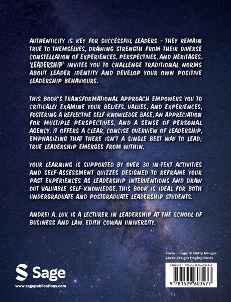 Your learning is supported by over 30 in-text activities and self-assessment quizzes designed to reframe your past experiences as leadership interventions and draw out valuable self-knowledge. This book is ideal for both undergraduate and postgraduate Leadership students.