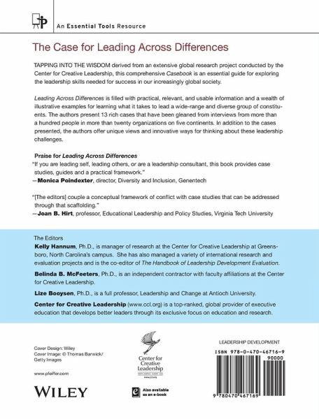 The Case for Leading Across Differences TAPPING INTO THE WISDOM derived from an extensive global research project conducted by the Center for Creative Leadership, this comprehensive Casebook is an essential guide for exploring the leadership skills needed for success in our increasingly global society. Leading Across Differences is filled with practical, relevant, and usable information and a wealth of illustrative examples for learning what it takes to lead a wide-range and diverse group of constituents. The authors present 13 rich cases that have been gleaned from interviews from more than a hundred people in more than twenty organizations on five continents. In addition to the cases presented, the authors offer unique views and innovative ways for thinking about these leadership challenges. Praise for Leading Across Differences "If you are leading self, leading others, or are a leadership consultant, this book provides case studies, guides and a practical framework." --Monica Poindexter, director, Diversity and Inclusion, Genentech "[The editors] couple a conceptual framework of conflict with case studies that can be addressed through that scaffolding." --Joan B. Hirt, professor, Educational Leadership and Policy Studies, Virginia Tech University