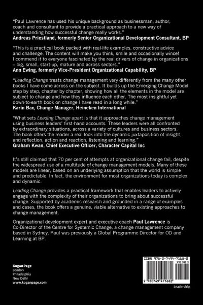 It is often claimed that 70% of organizational change efforts fail, despite the popularity of linear change models. However these linear approaches to change are often based on the premise that change is predictable and straightforward, when actually change is complex, with the 'human' element often changing the functioning of the organizational system as a whole. Leading Change provides the practical framework that allows leaders to actively engage with a complex adaptive system to bring about successful organizational change. Supported by academic research, and grounded with a range of examples and cases, the book offers a genuine, viable alternative to existing approaches.