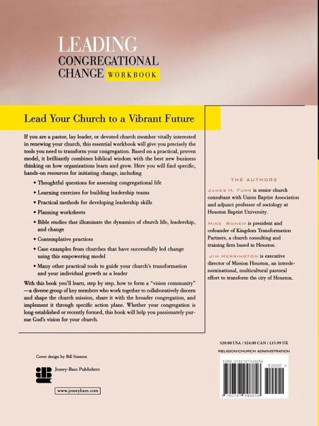 A Leadership Network Publication With this much-needed handbook, the authors brilliantly combine their experience guiding dozens of churches through the change process with both the study of Christian disciplines and the sophisticated understanding of such important business thinkers as John Kotter on leading change and Peter Senge on learning organizations. In this eminently readable book the authors have distilled their insights and practices into simple but powerful concepts for leading congregations, whether long established or recently formed, through profound change. Leaders using this guide will also be interested in the companion Leading Congregational Change Workbook, which offers assessment questions, planning worksheets, activities, and case examples for each stage of the process.