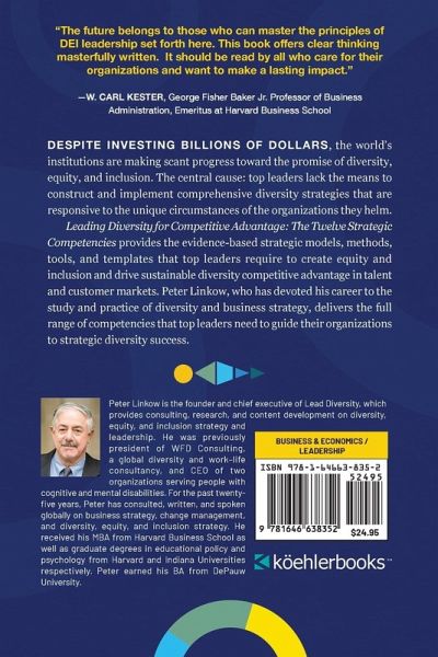 Despite investing billions of dollars, the world's institutions are making scant progress toward the promise of diversity, equity, and inclusion. The central cause: top leaders lack the means to construct and implement comprehensive diversity strategies that are responsive to the unique circumstances of the organizations they helm. ¿ Leading Diversity for Competitive Advantage: The Twelve Strategic Competencies provides the evidence-based strategic models, methods, tools, and templates that top leaders require to create equity and inclusion and drive sustainable diversity competitive advantage in talent and customer markets. Peter Linkow, who has devoted his career to the study and practice of diversity and business strategy, delivers the full range of competencies that top leaders need to guide their organizations to strategic diversity success.