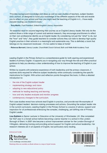 Chapter 1 Congratulations you're the English subject leader (Lisa Baldwin) Chapter 2 What's in a name? (Lisa Baldwin) Chapter 3 Leading the English curriculum (Lisa Baldwin) Chapter 4 A shared vision for English (Lisa Baldwin) Chapter 5 Documentation supporting English (Lisa Baldwin) Chapter 6 Pedagogical choices in primary English (Dr Liz Chamberlain) Chapter 7 Literacy in the 21st Century (Sandy Stockwell) Chapter 8 Observing key features of effective English lessons (Lisa Baldwin) Chapter 9 Working in teams and managing change (Dr Neil Suggett) Chapter 10 Working and supporting colleagues (Lisa Baldwin) Chapter 11 Leading school development: one school's journey (Lisa Baldwin) Chapter 12 Working with families to support literacy development (Dr Mary Scanlan) Chapter 13 Hot topics (Lisa Baldwin)