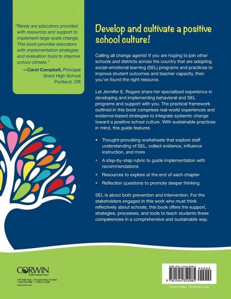 Develop and cultivate social-emotional learning to create a new school climate! As research on the positive outcomes of Social Emotional Learning (SEL) are emerging, schools and districts across the country are adopting the practices and processes to improve student outcomes and teacher capacity. The real-world experiences and evidence-based strategies outlined in this book will guide implementation of a practical and sustainable social emotional learning program. In addition to an integrated workbook readers will find: recommendations for steps with each strategy in an implementation rubric reflection questions to promote deeper thinking on SEL resources to explore at the end of each chapter