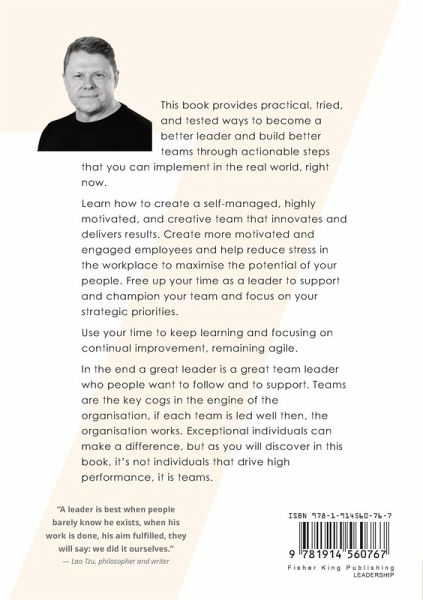 This book provides practical, tried, and tested ways to become a better leader and build better teams through actionable steps that you can implement in the real world, right now. Learn how to create a self-managed, highly motivated, and creative team that innovates and delivers results. Create more motivated and engaged employees and help reduce stress in the workplace to maximise the potential of your people. Free up your time as a leader to support and champion your team and focus on your strategic priorities. Use your time to keep learning and focusing on continual improvement, remaining agile. In the end a great leader is a great team leader who people want to follow and to support. Teams are the key cogs in the engine of the organisation, if each team is led well then, the organisation works. Exceptional individuals can make a difference, but as you will discover in this book, it's not individuals that drive high performance, it is teams.