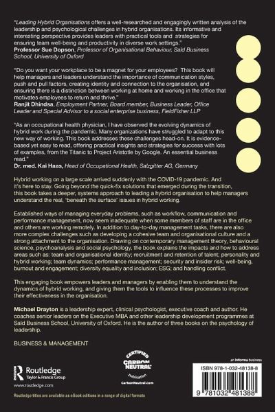 "Leading Hybrid Organisations offers a well-researched and engagingly written analysis of the leadership and psychological challenges in hybrid organisations. Its informative and interesting perspective provides leaders with practical tools and strategies for ensuring team well-being and productivity in diverse work settings."