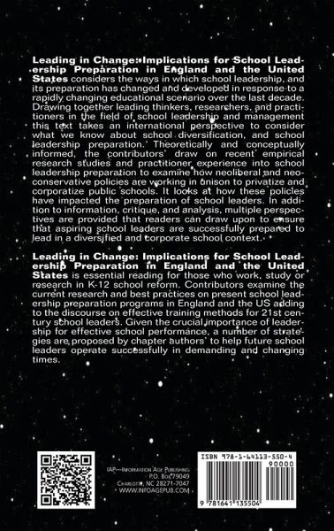 Leading in Change: Implications for School Leadership Preparation in England and the United States considers the ways in which school leadership, and its preparation has changed and developed in response to a rapidly changing educational scenario over the past decade. Drawing together leading thinkers, researchers, and practitioners in the field of school leadership and management this text takes an international perspective to consider what we know about school diversification, and school leadership preparation. Theoretically and conceptually informed, the contributors' draw on recent empirical research studies and practitioner experience into school leadership preparation to examine how neoliberal and neoconservative policies are working in unison to privatize and corporatize public schools. It looks at how these policies have impacted the preparation of school leaders. In addition to information, critique, and analysis, multiple perspectives are provided that readers can draw upon to ensure aspiring school leaders are successfully prepared to lead in a diversified and corporate school context. The book is divided into three sections. In the first section key topics covered include: · Relationship between school corporatization and leadership preparation in England and the United States · Comparative analysis of US charter schools and UK academy trusts Section two is focused on England. Key topics covered include: · System leadership and governance in networked systems · Role of a specialist leader · Role of social capital in the leadership of academy and free schools · Building leadership capacity · Women's leadership preparation in the independent sector Section three is focused on the United States. Key topics covered include: · Overview of current education reform, issues and challenges for school leadership · Historical analysis of standards for educational leadership preparation programs · Preparing charter school leaders, emerging challenges and opportunities · Role of a growth mindset in principal preparation programs · School leadership preparation and development in one state Leading in Change: Implications for School Leadership Preparation in England and the United States is essential reading for those who work, study, or research in k-12 school reform. Contributors examine the current research and best practices on present school leadership preparation programs in England and the US adding to the discourse on effective training methods for 21st century school leaders. Given the crucial importance of leadership for effective school performance, a number of strategies are proposed by chapter authors to help future school leaders operate successfully in demanding and changing times.