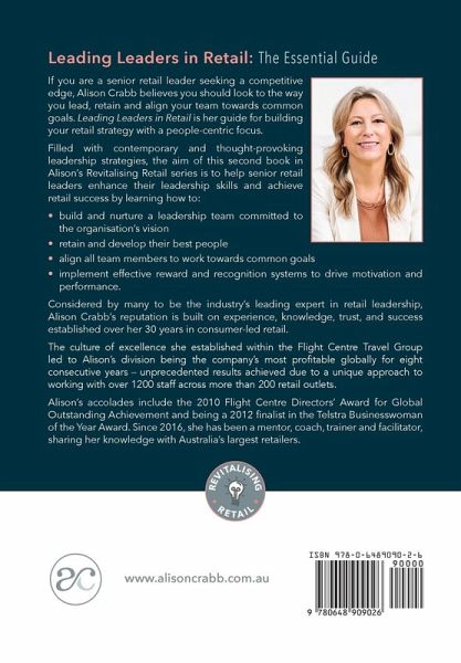 Filled with contemporary and thought-provoking leadership strategies, the aim of this second book in Alison Crabb's Revitalising Retail series is to help senior retail leaders enhance their leadership skills and achieve retail success by learning how to: ¿ build and nurture a leadership team committed to the organisation's vision ¿ retain and develop their best people ¿ align all team members to work towards common goals ¿ implement effective reward and recognition systems to drive motivation and performance.