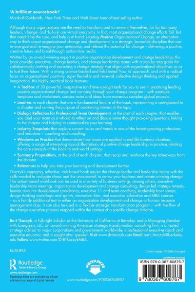 Although many organizations see the need to transform and to reinvent themselves, for far too many leaders, "change" and "failure" are virtual synonyms. In fact, most organizational change efforts fail. But that needn't be the case, and help is at hand. Leading Positive Organizational Change, an alternative way to think about organizational change and development, is a strategic, learnable discipline that can re-energize and re-imagine your enterprise, and release the potential for change - delivering a positive, creative future and breakthrough bottom-line results.