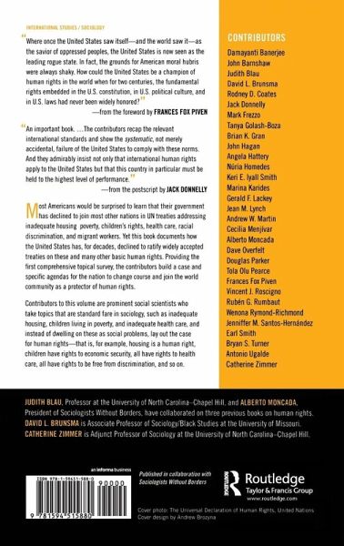 Most Americans would be surprised to learn that their government has declined to join most other nations in UN treaties addressing inadequate housing, poverty, children's rights, health care, racial discrimination, and migrant workers. Yet this book documents how the U.S. has, for decades, declined to ratify widely accepted treaties on these and many other basic human rights. Providing the first comprehensive topical survey, the contributors build a case and specific agendas for the nation to change course and join the world community as a protector of human rights."With Contributions by and on: "