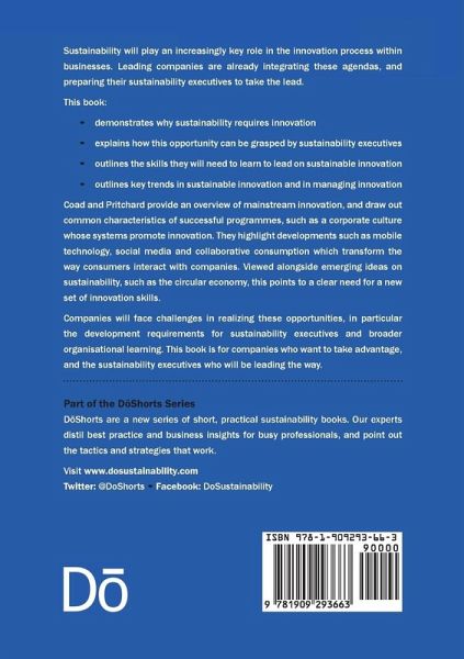 Sustainability will play an increasingly key role in the innovation process within businesses. Leading companies are already integrating these agendas, and preparing their sustainability executives to take the lead. This book demonstrates why sustainability requires innovation; explains how this opportunity can be grasped by sustainability executives; outlines the skills they will need to learn to lead on sustainable innovation; and outlines key trends in sustainable innovation and in managing innovation. Coad and Pritchard provide an overview of mainstream innovation, and draw out common characteristics of successful programmes, such as a corporate culture whose systems promote innovation. They highlight developments such as mobile technology, social media and collaborative consumption which transform the way consumers interact with companies. Viewed alongside emerging ideas on sustainability, such as the circular economy, this points to a clear need for a new set of innovation skills. Companies will face challenges in realizing these opportunities, in particular the development requirements for sustainability executives and broader organizational learning. This book is for companies who want to take advantage, and the sustainability executives who will be leading the way.