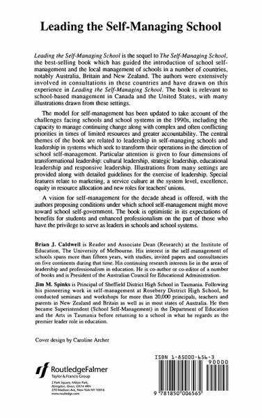 This work is a sequel to The Self-Managing School and deals with leadership responsibilities on two levels - as head of a school responsible for loca management and as a director in a Local Education Authority responsible