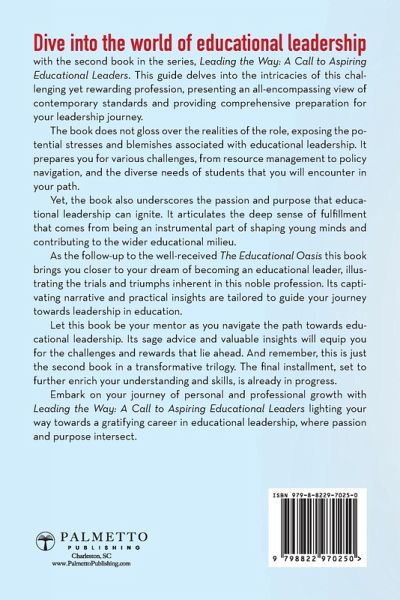 Unveiling Book #2: A Comprehensive Guide for Aspiring Educational Leaders - Navigating Standards, Embracing Challenges, and Finding Purpose. Await Book #3! Enter a realm of exploration into the demanding but rewarding world of educational leadership with the second installment in this enlightening series, the Leading the Way: A Call to Aspiring Educational Leaders. This insightful guide dives deep into the essence of educational leadership, meticulously laying out the contemporary standards, providing you with the tools and preparation for the role you aspire to. This book doesn't shy away from the truth. It addresses the blemishes and stresses associated with the position, presenting an authentic picture of the challenges you may face as an educational leader. From managing resources to dealing with the diverse needs of students, to navigating the complex world of educational policies, the guide prepares you to deal with it all. However, it's not all about the challenges. The book also underlines the deep sense of fulfillment and purpose that comes with this profession. It paints a picture of a career that is more than just a job - it's a passion. It emphasizes the joy and satisfaction derived from being an integral part of shaping young minds and contributing to the broader educational landscape. As the sequel to the much-acclaimed The Educational Oasis, this book takes you one step closer to your dream of becoming an educational leader, articulating the trials and triumphs that accompany this noble profession. Its engaging narrative and practical insights are meticulously designed to suit your journey towards leadership in the educational sector. So, let this book be your mentor, guide, and companion as you traverse the path towards a career in educational leadership. With the sage advice and insights it offers, you'll be well-equipped to carve your niche in the field. And remember, this is only the second in a series of three transformative books. The third, which promises to further enhance your knowledge and skills, is already on its way to you. Embark on this journey of self-discovery and professional growth with the Leading the Way: A Call to Aspiring Educational Leaders. Let it illuminate your path towards a fulfilling career in educational leadership, where passion meets purpose.