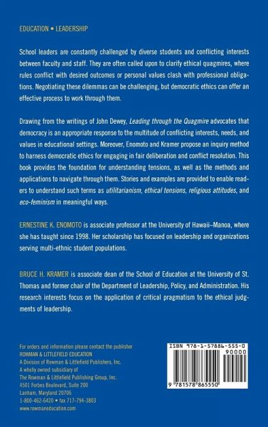 Drawing from the writings of John Dewey, Leading Through the Quagmire advocates his notion that democracy is an appropriate response to the multitude of conflicting interests, needs, and values in educational settings. Moreover, Enomoto and Kramer propose an inquiry method to harness democratic ethics for engaging in fair deliberation and conflict resolution. This book provides the foundation for understanding tensions, as well as the methods and applications to navigate through them. Stories and examples are provided to enable readers to understand such terms as utilitarianism, ethical tensions, religious attitudes, and eco-feminism in meaningful ways.