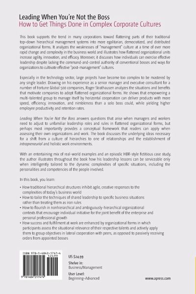 Especially in the technology sector, large projects havebecome too complex to be mastered by any single leader. Drawing on hisexperience as a senior manager and executive consultant for a number of FortuneGlobal 500 companies, Roger Strathausen analyzes the situations and benefitsthat motivate companies to adopt flattened organizational forms. He shows thatempowering a multi-talented group to manage itself by horizontal cooperationcan deliver products with more speed, efficiency, innovation, and nimblenessthan a solo boss could, while yielding higher employee productivity andretention rates.
