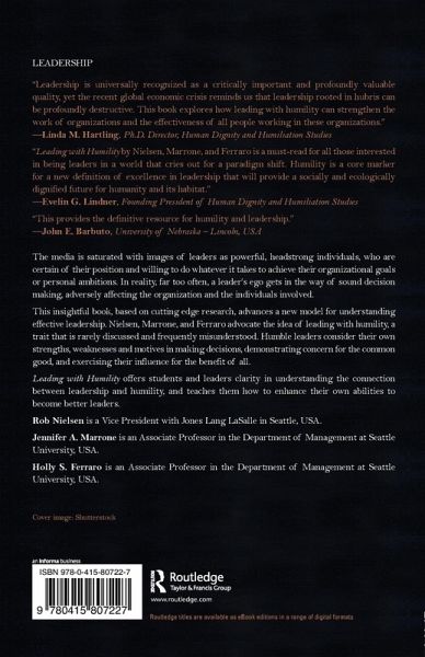 The media is saturated with images of leaders as powerful, headstrong individuals, who are certain of their position and willing to do whatever it takes to achieve their organizational goals or personal ambitions. In reality, far too often, a leader's ego gets in the way of sound decision making, adversely affecting the organization and the individuals involved. This insightful book, based on cutting edge research, advances a new model for understanding effective leadership. Nielsen, Marrone and Ferraro advocate the idea of leading with humility, a trait that is rarely discussed and frequently misunderstood. Humble leaders consider their own strengths, weaknesses and motives in making decisions, demonstrating concern for the common good, and exercising their influence for the benefit of all. Leading with Humility offers students and leaders clarity in understanding the connection between leadership and humility, and teaches them how to enhance their own abilities to become better leaders.