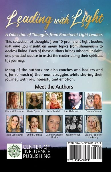 Meet the Authors Clare Williamson, Alexis Quiterio, Jess Reidell, Luis Melendez Jr., Deanna Vicera, Nan Leffingwell, Judith Juhnke, Carmen Cardoso, Joanne Webb, Victoria Leckenby. This collection of thoughts from 10 prominent light leaders will give you insight on many topics from shamanism to ageless living. Each of these authors brings wisdom, insight, and practical advice to assist the reader along their spiritual life journey. Many of the authors are also coaches and healers and offer so much of their own struggles while sharing their journey with raw honesty and emotion. This book will change your life, if you let it!