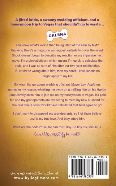 A jilted bride, a swoony wedding officiant, and a honeymoon trip to Vegas that shouldn't go to waste... Galena You know what's worse than being jilted at the altar by text? Knowing there's a magazine waiting just outside to cover the event. Shock doesn't begin to describe my reaction or my impulsive next move. I'm a biostatistician, which means I'm quick to calculate the odds, and I was so sure of him after our two-year relationship. If I could be wrong about him, then my careful calculations no longer apply to my life. So when the gorgeous wedding officiant, Mayor Levi Appleton, comes to my rescue, whisking me away on a thrilling ride on his Harley, I impulsively invite him to join me on my honeymoon in Vegas. It's paid for, and my grandparents are expecting to meet my new husband for the first time. I never would have calculated that he'd agree to go! I don't want to disappoint my grandparents, so I let them believe Levi is my true love. And they adore him. What are the odds I'd fall for him too? Tiny. So tiny it's ridiculous. Can this possibly be real? This romantic comedy stands alone with a swoonworthy happy-ever-after! No cliffhangers. Unleashed Romance Series Fetching (Book 1) Dashing (Book 2) Sporting (Book 3) Toying (Book 4) Blazing (Book 5) Chasing (Book 6) Daring (Book 7) Leading (Book 8) Racing (Book 9) Loving (Book 10)