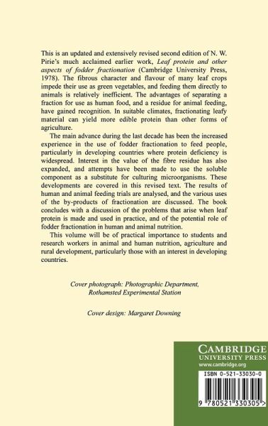 This is an extensively revised second edition of N. W. Pirie's much acclaimed earlier work, Leaf Protein and Other Aspects of Fodder Fractionation.