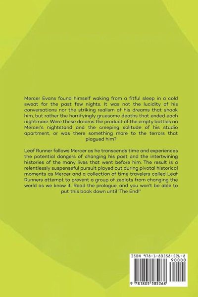 Mercer Evans, a talented junior analyst for a hedge fund who is habitually late for work, starts experiencing vivid dreams that feel more like memories, flashes of places he's never been and people he's never met. But then his uncle sends him an old map with Madagascar circled in red. He thinks it's nothing more than a curious family relic until he realizes there's more to his family's history than he ever imagined. Haunted by his brother's disappearance and driven by a need for answers to the dreams plaguing him, Mercer digs into his ancestry, uncovering a legacy that stretches back centuries. From the modern streets of New York City to the ancient ruins of Wales and the colonial past of Madagascar, Mercer searches to find the answers he seeks. But with every step forward, Mercer and his sister Lizzy find themselves tangled in a deeper mystery, one that powerful forces are desperate to keep hidden. Mercer's dreams reveal hidden truths about his ancestors, secrets tied to pivotal moments in history. As he and Lizzy follow the trail of clues left behind, they discover that some of their family's choices have had far-reaching consequences. And now, Mercer faces an impossible decision: uncover the truth and risk rewriting history-or let the past remain buried. But the past isn't the only thing chasing Mercer. A secret organization that has been manipulating history is watching his every move. If Mercer uncovers too much, he may not live long enough to share what he's found. Set against a backdrop of rich historical landscapes and high-stakes suspense, Leaf Runner is a gripping story about family, legacy, and the power of hidden truths. Perfect for fans of historical thrillers, supernatural mysteries, and stories where the past and present collide, Leaf Runner will keep you guessing until the very last page. Discover the secrets of the past. Face the truth. Read Leaf Runner today.